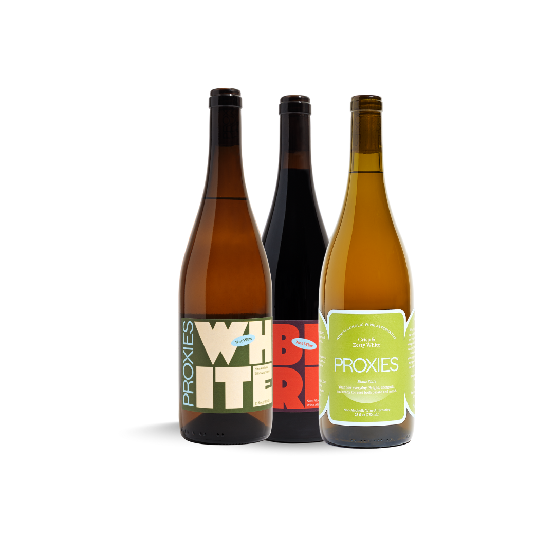 Proxies don’t necessarily taste exactly like any specific wine, but are designed to look, feel, and drink like wine. They have acidity, texture, tannin, and spice and are crafted to pair with food and be enjoyed in wine glasses. Wine, but not.